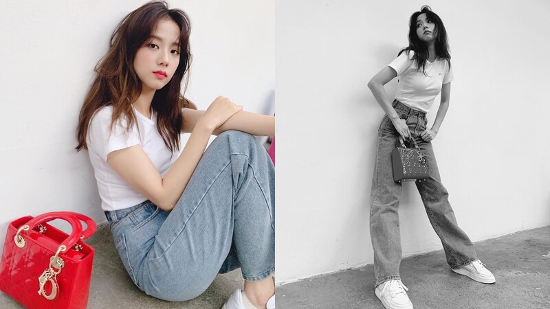 简单的白色T-Shirt配上牛仔裤,两大经典不败单品的结合,绝对是零失误的时髦搭配,Jisoo选择合身白色T-Shirt搭配高腰牛仔裤,突显腰部线条看起来更显瘦,不论是搭配小白鞋或跟鞋都十分有型。
